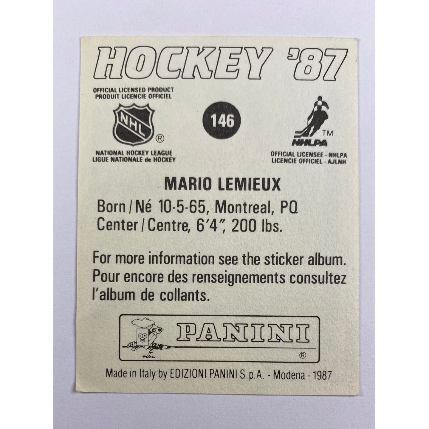 1987-88 Panini Mario Lemieux Sticker