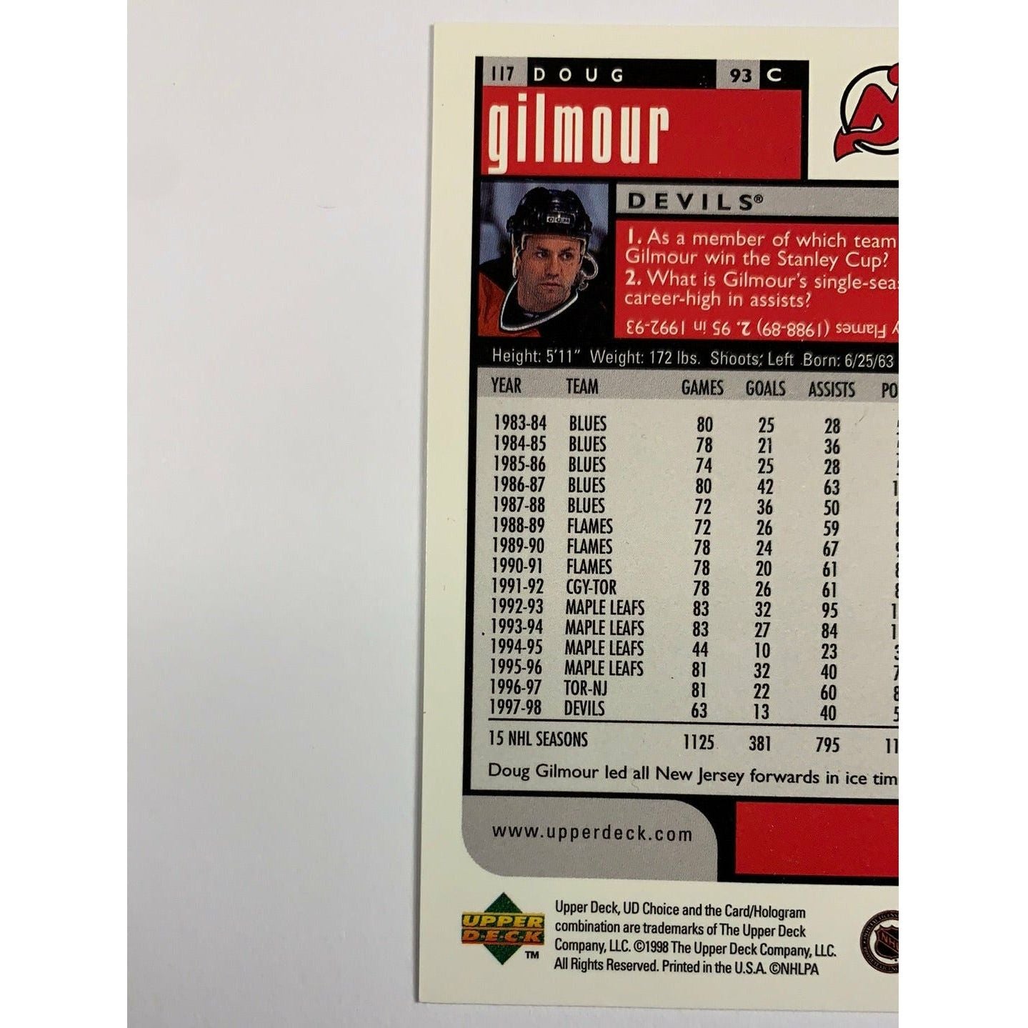 1998-99 Upper Deck Choice Doug Gilmour