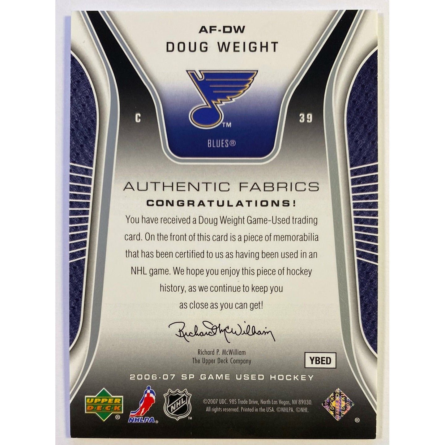 2006-07 SP Game Used Doug Weight Authentic Fabrics