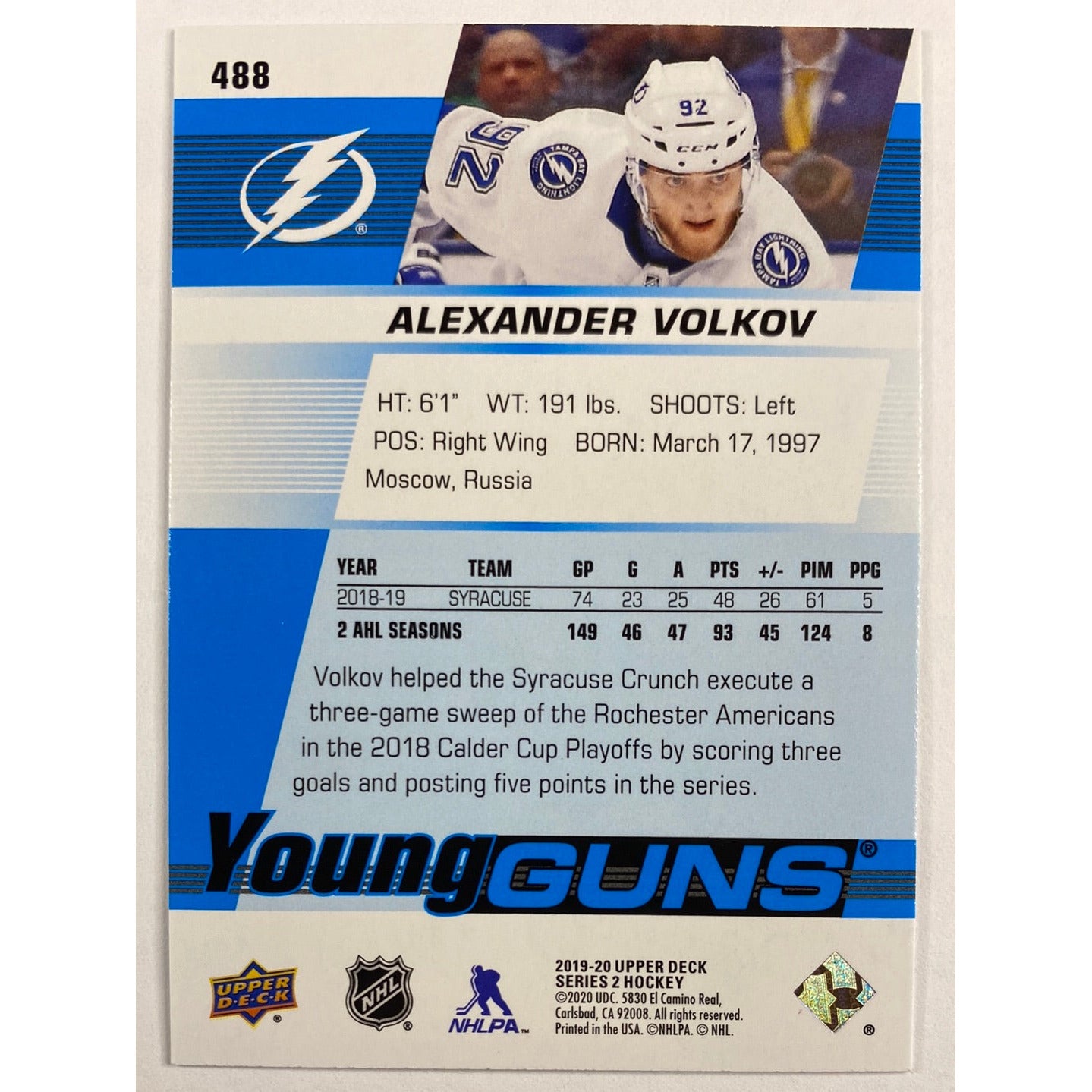 2019-20 Upper Deck Series 2 Alexander Volkov Young Guns