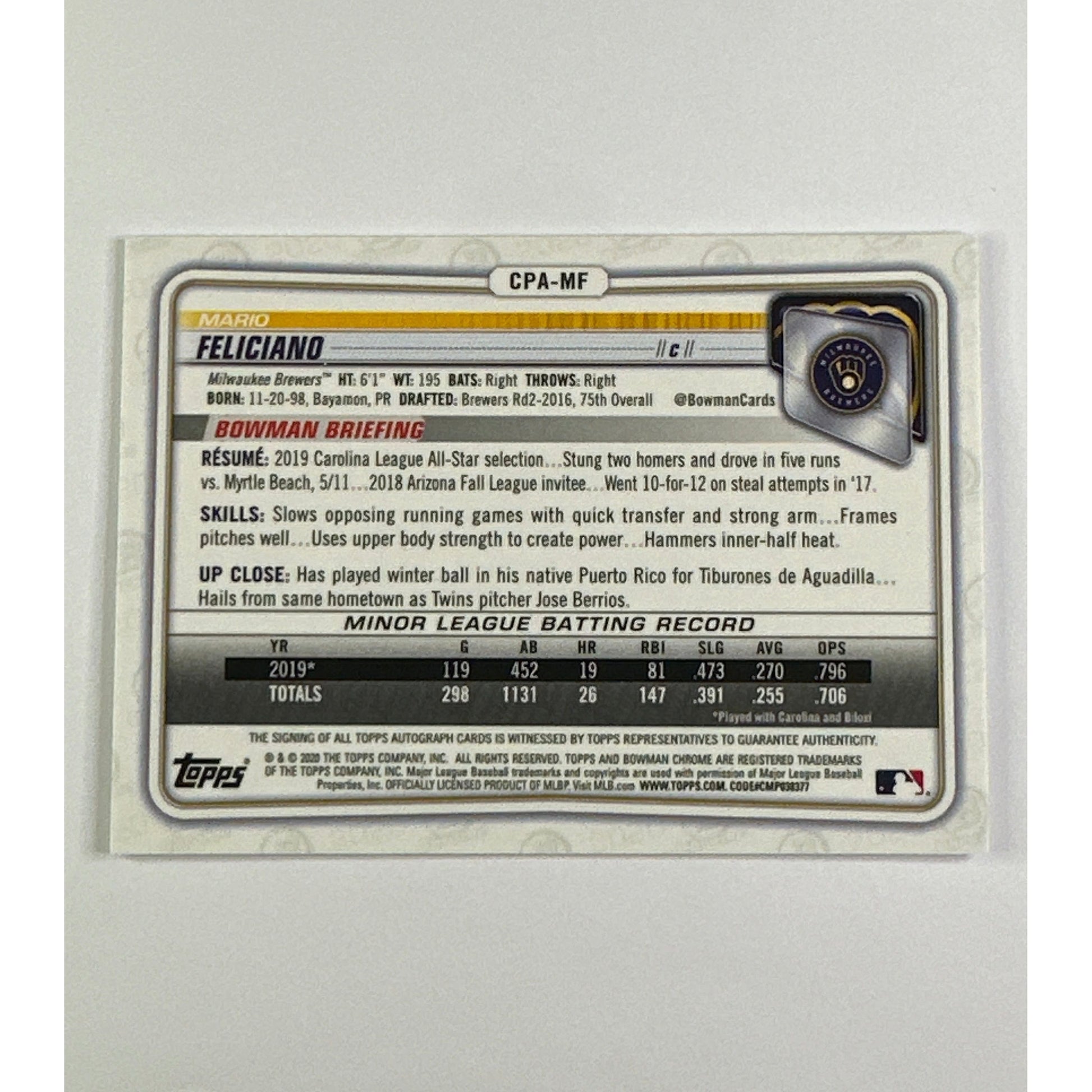 2020 Bowman Chrome Mario Feliciano Certified Autograph