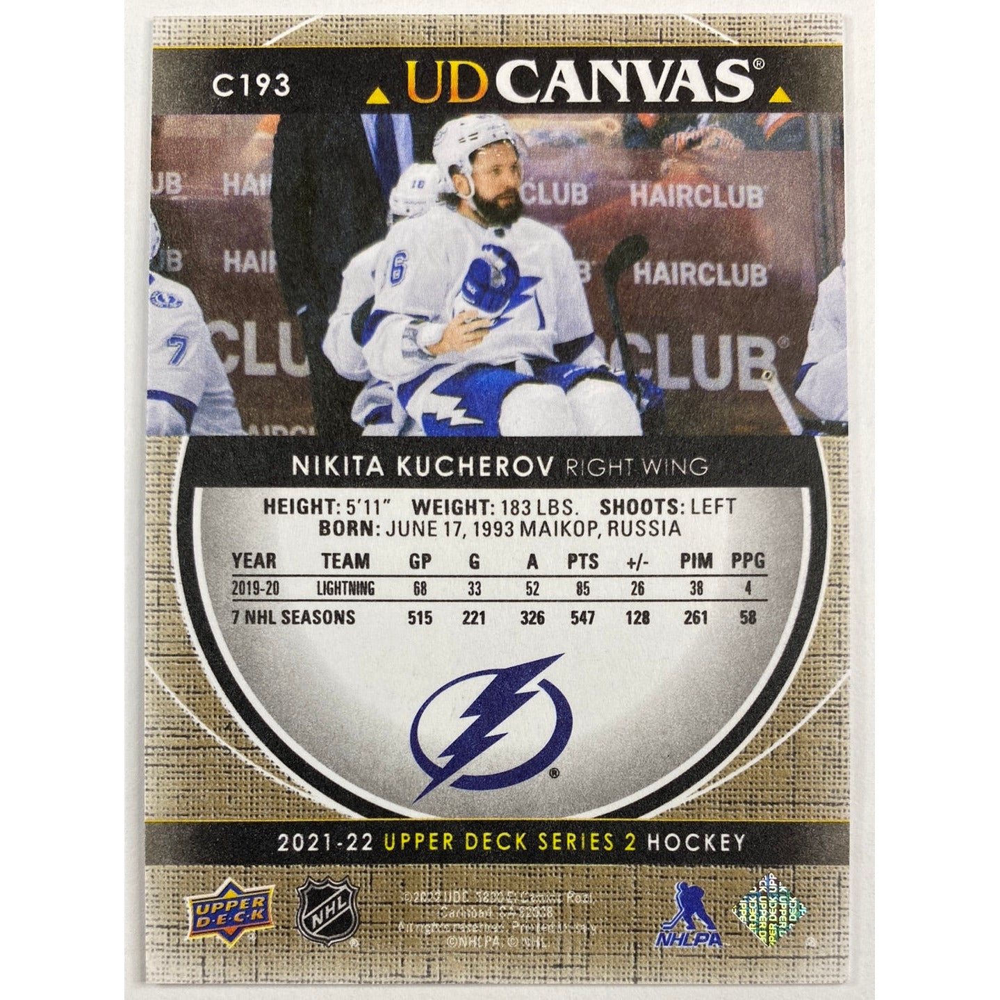 2021-22 Upper Deck Series 2 Nikita Kucherov UD Canvas
