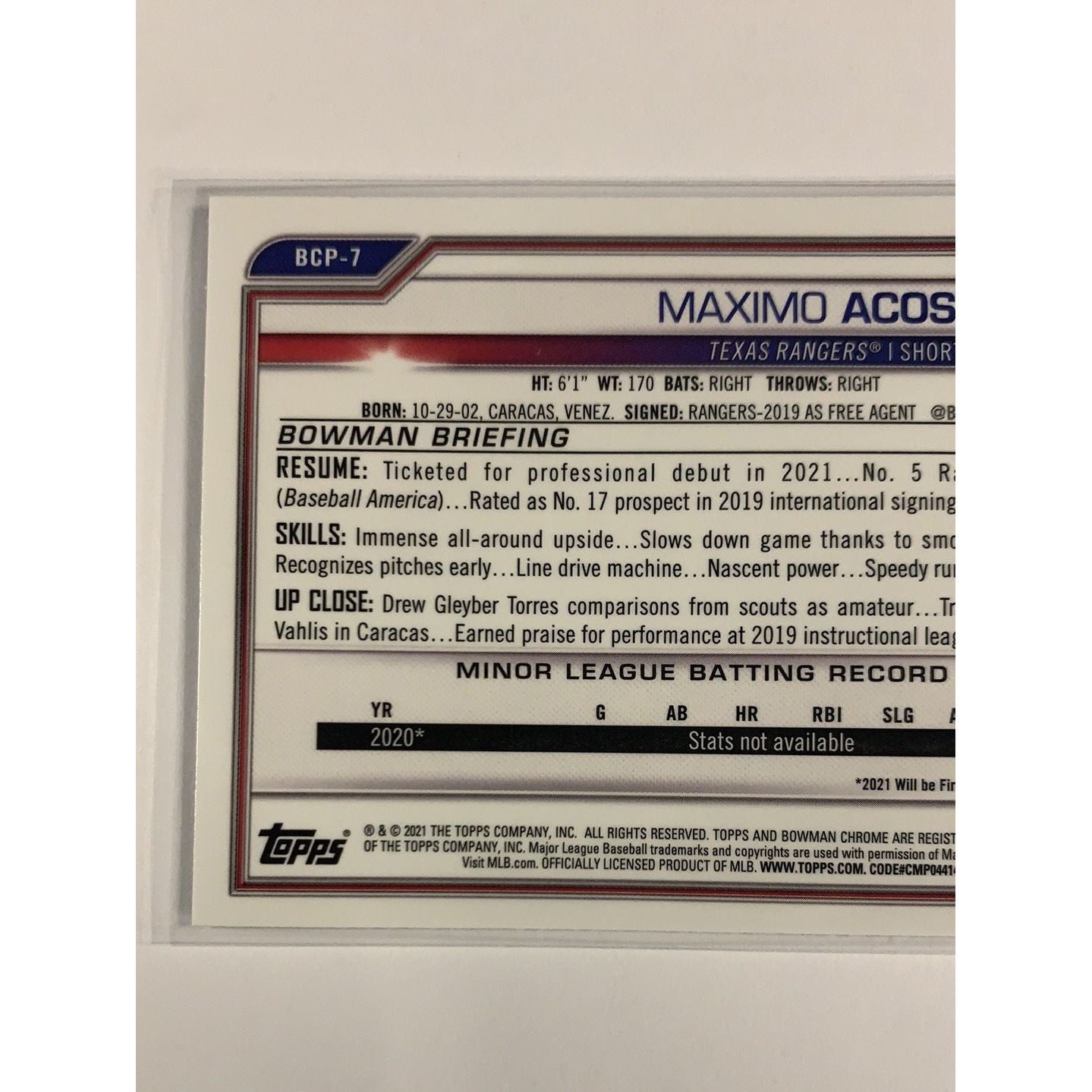 2021 Bowman 1st Chrome Maximo Acosta BCP-7