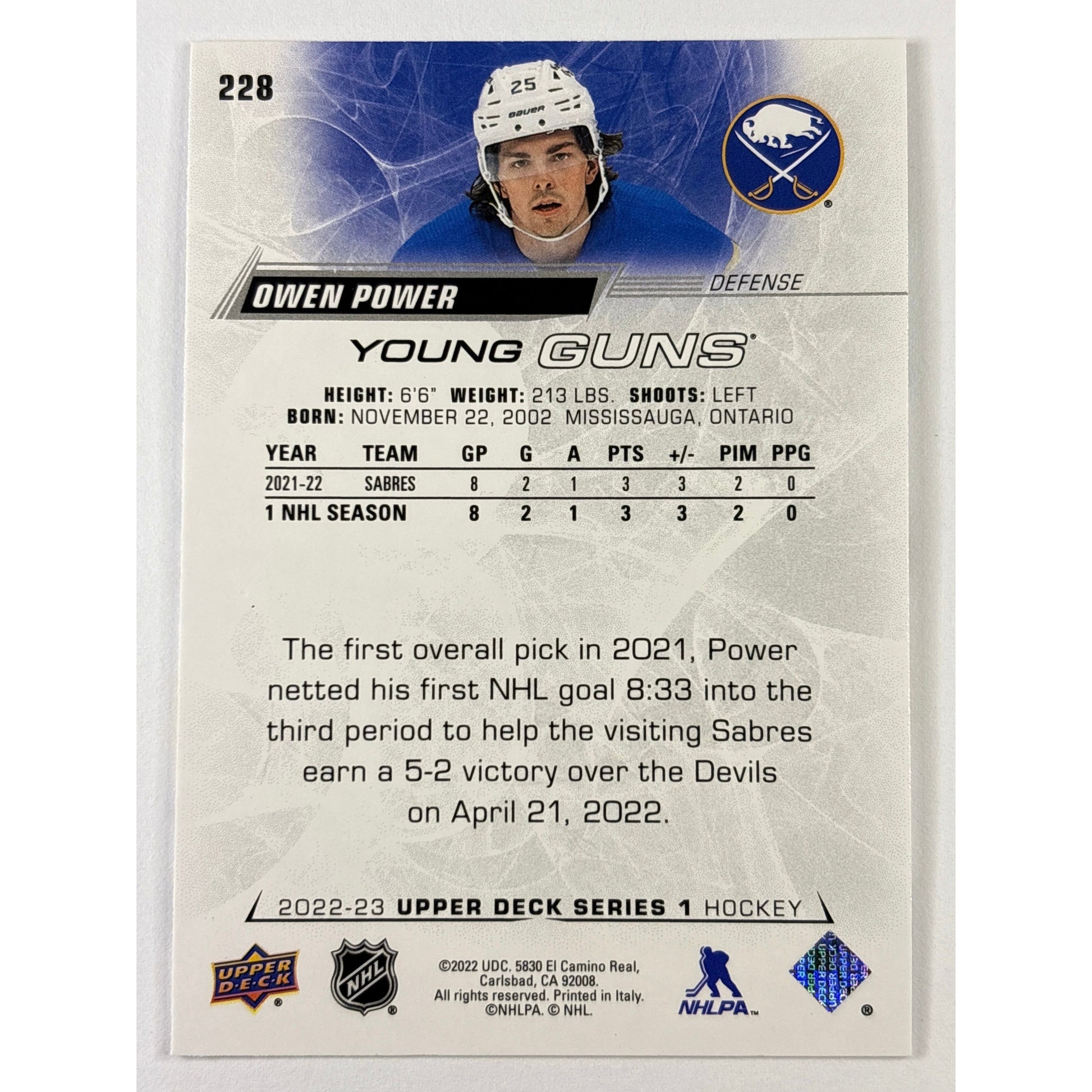 2022-23 Upper Deck Series 1 Owen Power Young Guns