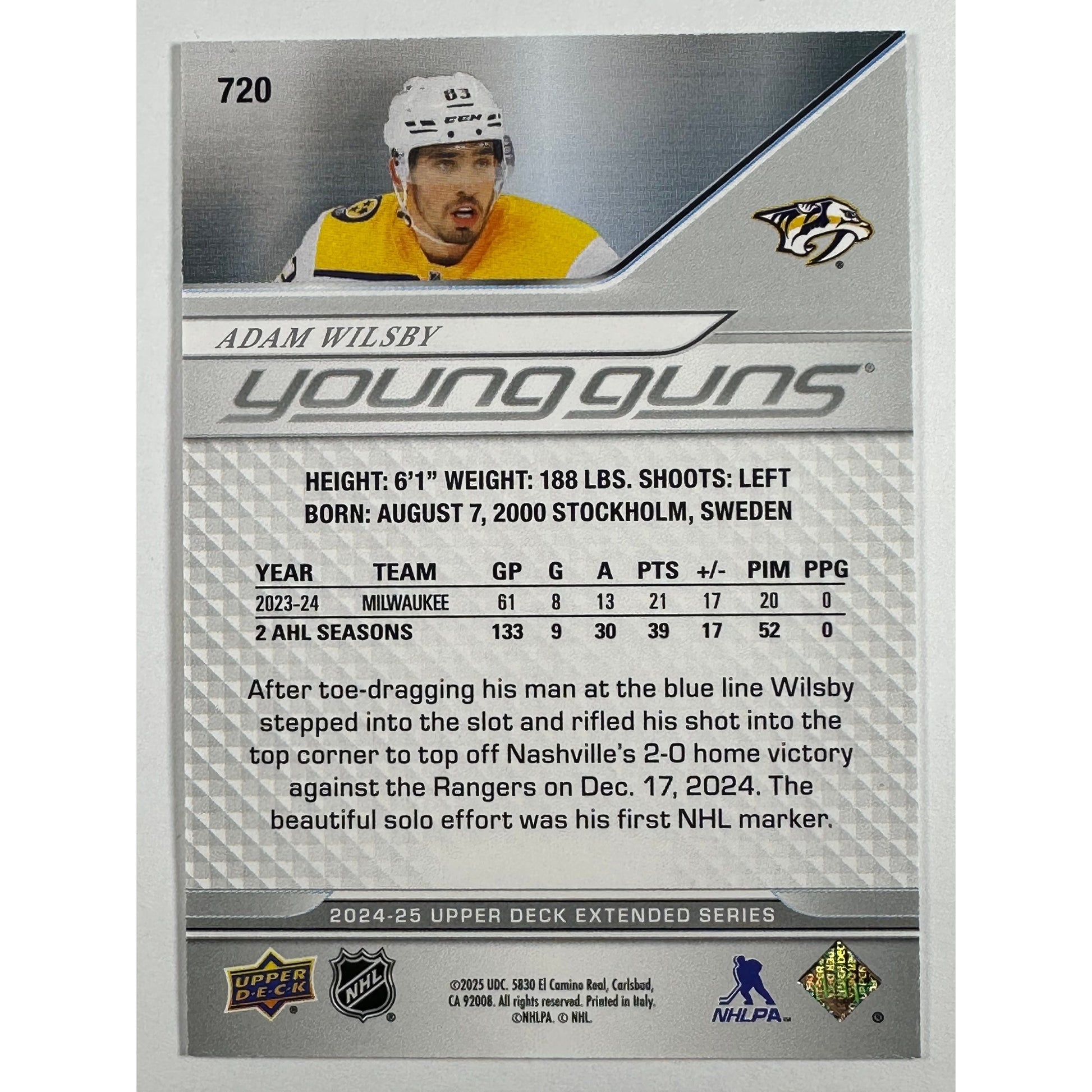 2024-25 Upper Deck Extended Series Adam Wilsby Young Guns Deluxe /250