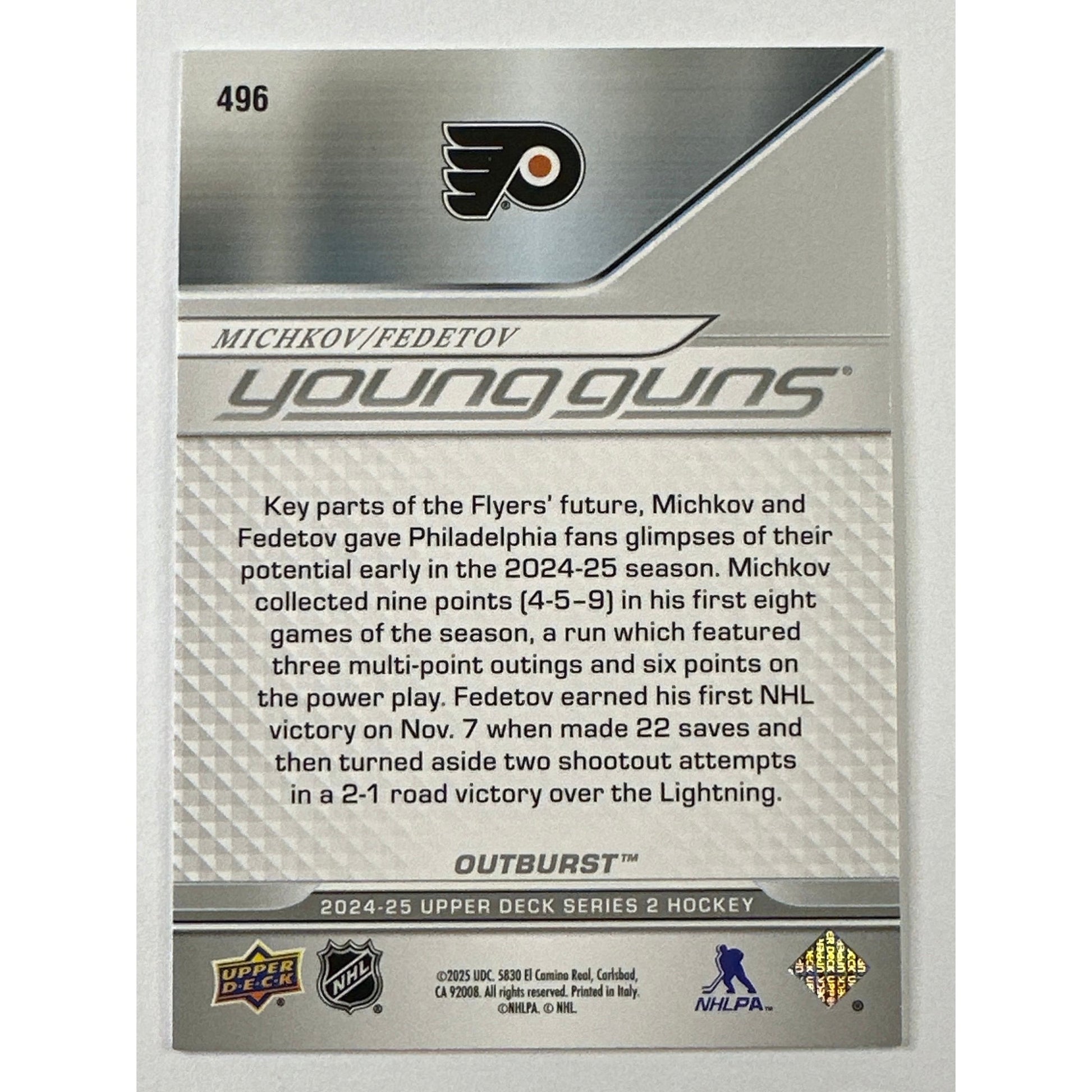 2024-25 Upper Deck Series 2 Michkov / Fedetov Young Guns Teammates Outburst
